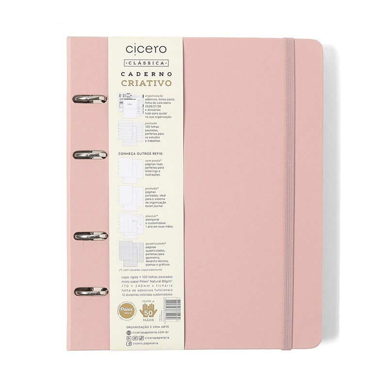 Este ícone da organização e de sucesso da Cicero tem capa dura com cantos arredondados, elástico para fechamento e ferragem prata com 4 furos. Confira todos os refis disponíveis para somar na sua organização, cada um com um uso específico: fichas pautadas, folhas quadriculadas, pontadas, pautadas e sem pauta, folhas com linhas brancas e divisórias com folha de adesivo.
