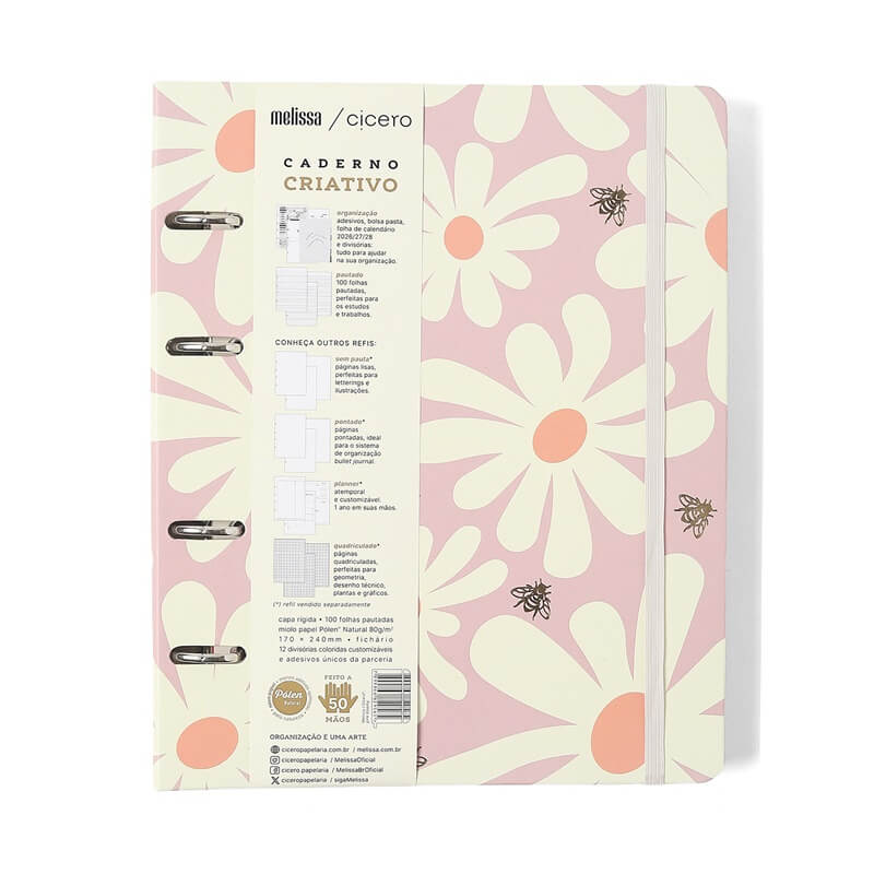 Caderno Criativo Argolado 17x24 Melissa Pink Bloomy Cicero