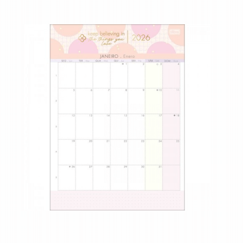 Planejamento mensal para organizar os compromissos em casa, no trabalho e na escola.