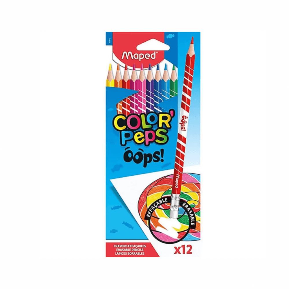 Embalagem de papelão com 12 lápis de cor apagáveis Maped