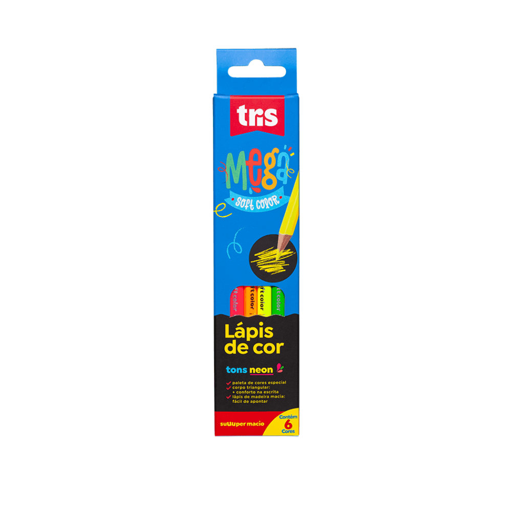 MEGA divertido! MEGA colorido! A linha de colorir MEGA da TRIS é uma alternativa de qualidade para potencializar a criatividade dos seus usuários. Cores vibrantes! Lápis de madeira, de traço super macio e corpo triangular.