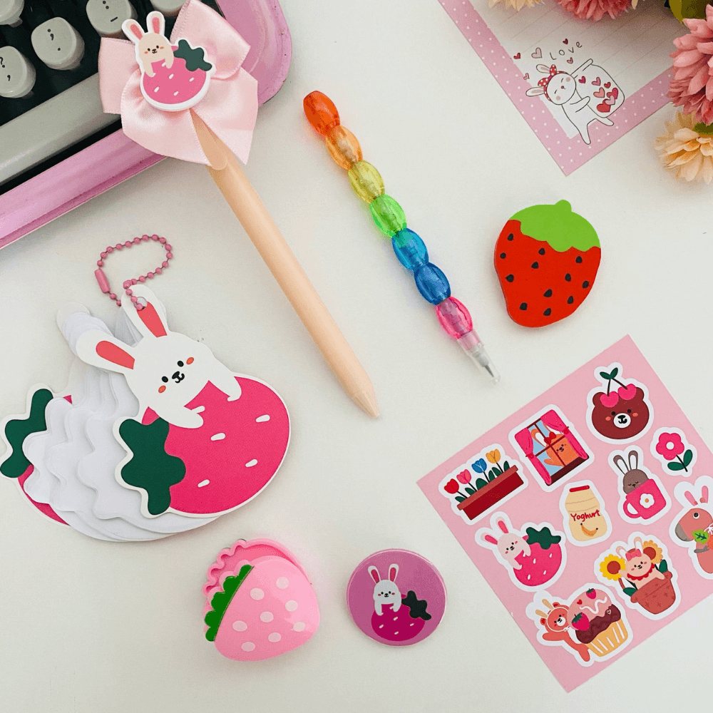 Desenvolvido com carinho, ele traz todo o encanto da data em um formato único, perfeito para quem ama papelaria. Dentro, um kit recheado de itens fofos e exclusivos, prontos para deixar sua rotina mais criativa e colorida.