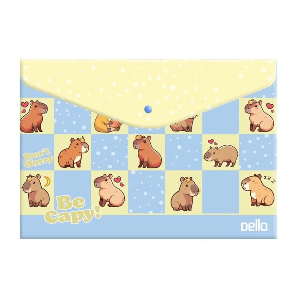 Envelope A4 produzido em polipropileno, com botão para fechamento.